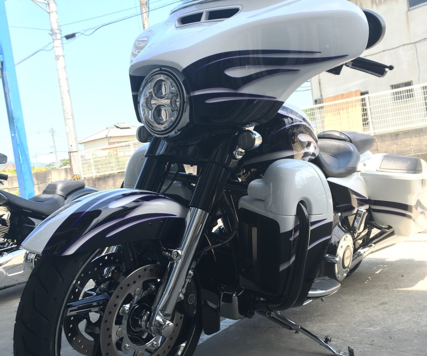 こんにちは、香川県のハーレー整備・カスタムショップSPOONMOTORCYCLEです\(^o^)/ 先の三連休は、天気は持ちましたね☀ ついに、18日に梅雨明けたとのことです~~~♬ 夏がやってきますね🍉 山・海・花火くらいは(笑)満喫したいです☆:*・゚(●´∀`●):*・゚☆ 今日は、2014年式FLSTCのハンドル交換のご紹介です✨ ノーマルのハンドルから14inのハンドルバーに交換 ヘリテイジには、これくらいのサイズのハンドルがバランス的に似合う気がします。 合わせて、スイッチキャップもクローム&アレンネスのグリップを装着。 元々車両もピカピカのお客様ですが、より高級感が増しましたね。 ハンドル周りは変えただけでも、インパクト大!!! 乗り心地も雰囲気が変わるので、面白いです(^^)/ また、感想お聞かせ下さい♪ ありがとうございました❢