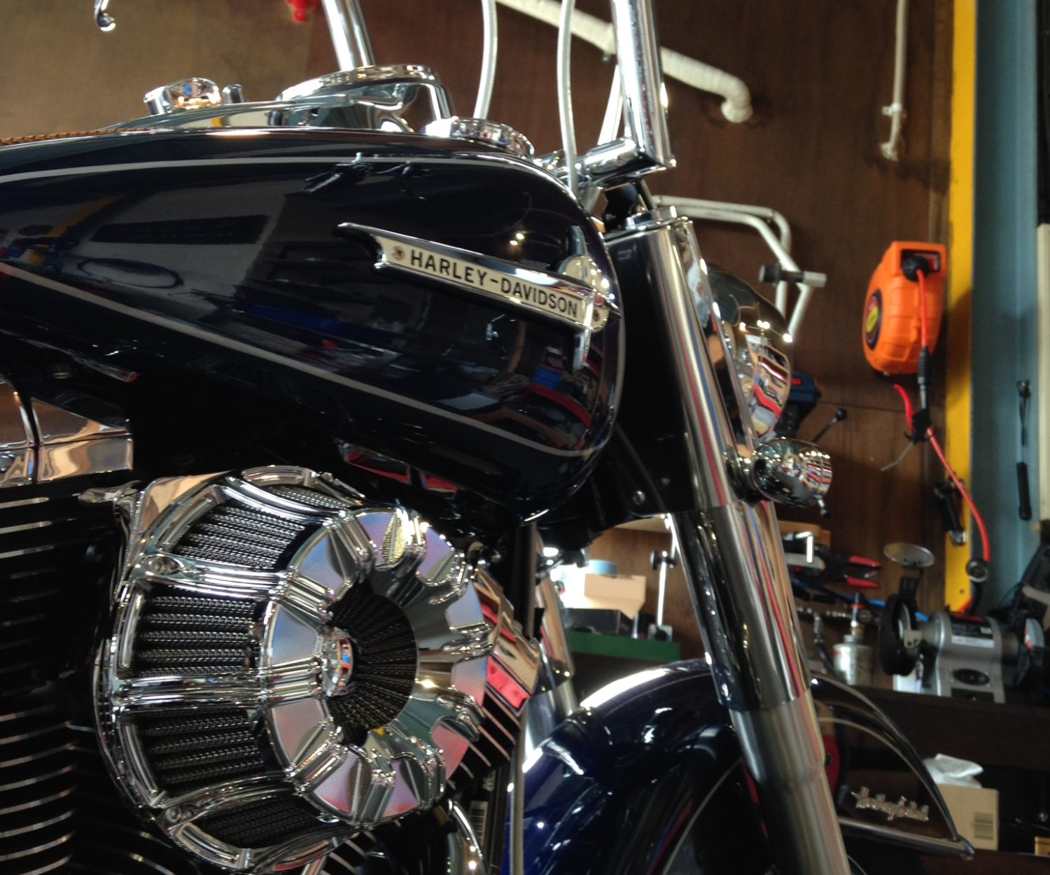 こんにちは。いつもお世話になります。 雨が降ってばかりでしたが、久しぶりに晴れた気がします。 最近営業日に関する更新ばかりだったので、今回はいろいろ盛り沢山だった一日をご紹介します(^^♪ 朝一番で来られた方はcvoのお客様で、部品を取り付けて颯爽と出発されて行かれましたので 写真撮り忘れてしまいましたが(申し訳ありません。)メーター周りのクロームリングを 取り付けていただきました。また、次回写真を載せさせていただきますね~ 次のお客様はエアクリーナーをノーマルからアレンネスに交換です。 交換するだけで雰囲気がガラリと変わりましたね。お客様のテイストにピッタリでした★ お昼からは常連のお客様が、ご友人と一緒に来店してくださいました。 ご友人のお一人が本日納車だったそうです。(おめでとうございます♪) いつも、ありがとうございます。 続きまして、アレンネスのフレームグリルの取り付けです。 意外に見落としがちな箇所ですが、正面からのアクセントになりました。 差し入れにパンをいただきました!いつもありがとうございます。 もうひと方、中古車両を購入されたお客様の納車です。(おめでとうございます♪♪) パープルがアクセントの車体で、距離も少ない良好車両でしたね。 是非、いつでも乗って遊びに来てください! 次のお客様は、アレンネスのサドルバックラッチ交換です。 さりげない所に、クロームの輝き・・・車体のイメージが引き締まりましたね。 最後のお客様は、オーリンズのサスペンション交換です。…
