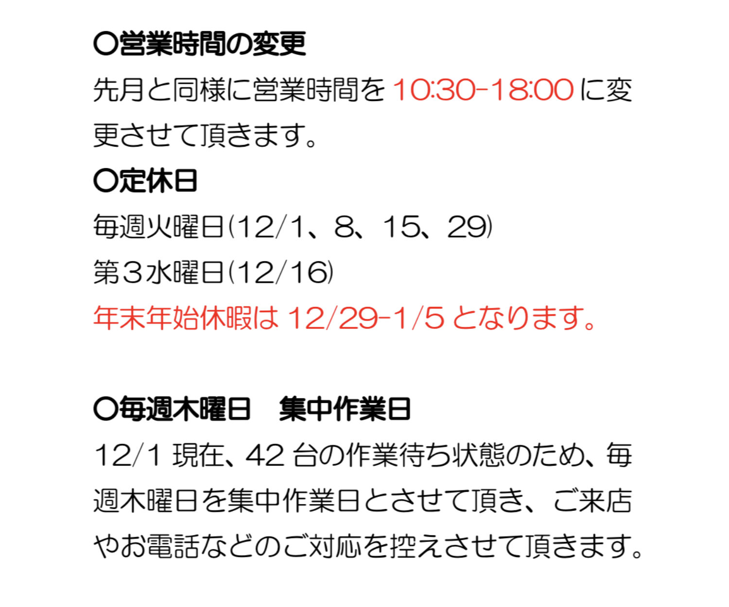すべての記事, ブログ, 店舗情報 31 12月 2020 年末のご挨拶 2020年もお残すところあとわずかとなりました。 今年1年も、皆様にご愛顧いただきまして本当に有難う御座いました。 来年も皆様のオートバイライフをサポートできますよう、より一層の努めたいと思います。 尚、当社の年末年始の休業期間は下記の通りです。 〔年末年始休業期間〕 12月29日(火)~1月5日(火) 新年は1月6日(水)10:30より営業開始となります。 年末年始、怪我や事故などご注意いただき良いお年をお迎えください。 spoon No Comments