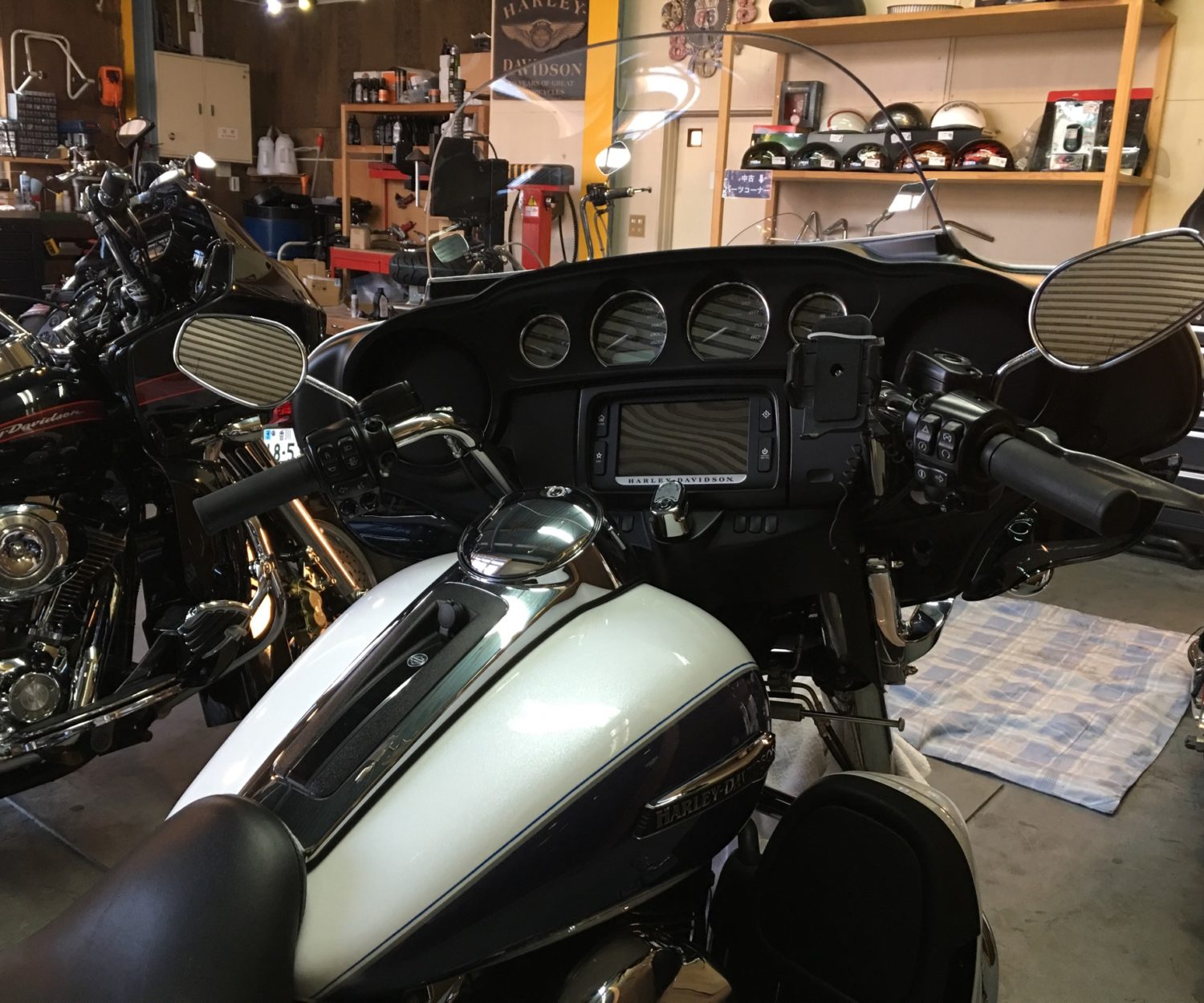 こんにちは、香川県のハーレー整備・カスタムショップSPOONMOTORCYCLEです\(^o^)/ 今回は、2015年式FLHTCUGのハンドル交換についてご紹介です。 こちらのお客様は、今月トライクで仙台など東北周られてこられたとのこと。 走行距離は、3,000㌔を優に超えるとか❢ 出発時は、天候が悪かったそうですが道中は天候に恵まれたとのことで 良かったです☀ 【BEFORE】 【作業途中】 カウルがついているタイプは、ハンドル交換でバラバラにします~ ノーマルのハンドルから、純正のバッドウィングエイプバーに変更です。 運転時の姿勢が前傾にならず、見た目のカスタム感もgoodですね♪ このまま1年点検に行かれました(*^^*)/1年早いですね~💦 ありがとうございました❢