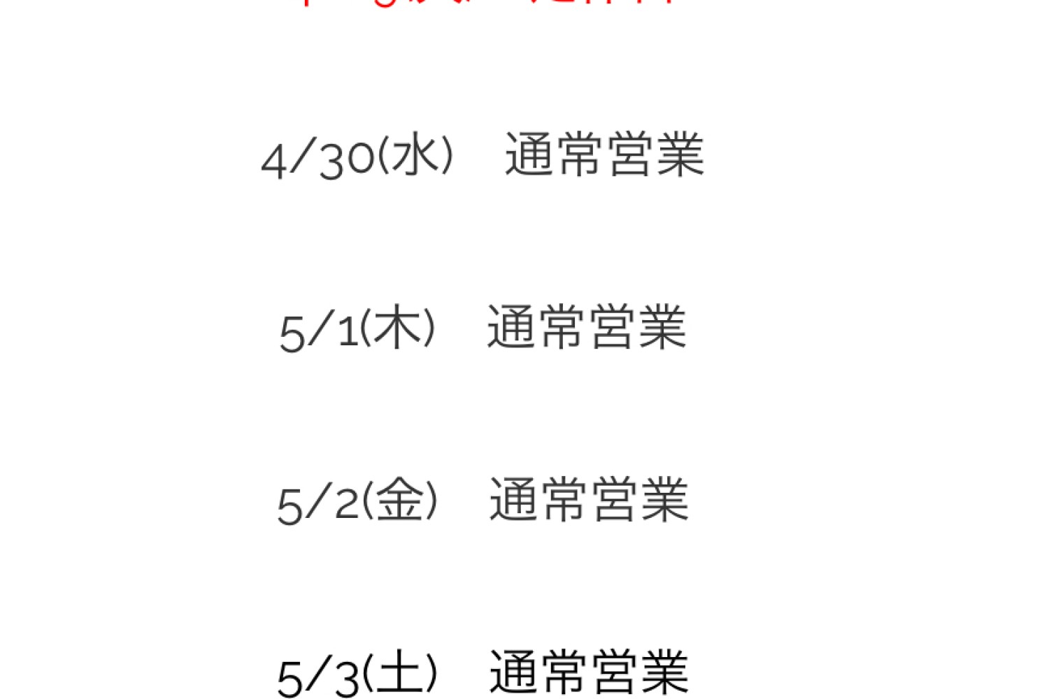 5/4(日) 休業