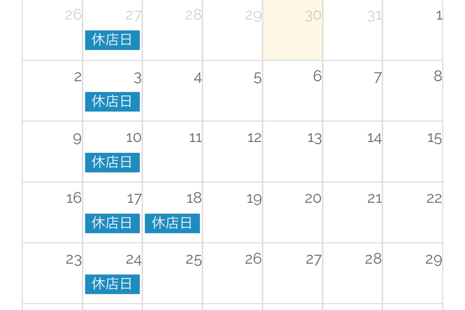 4/29(火) 定休日