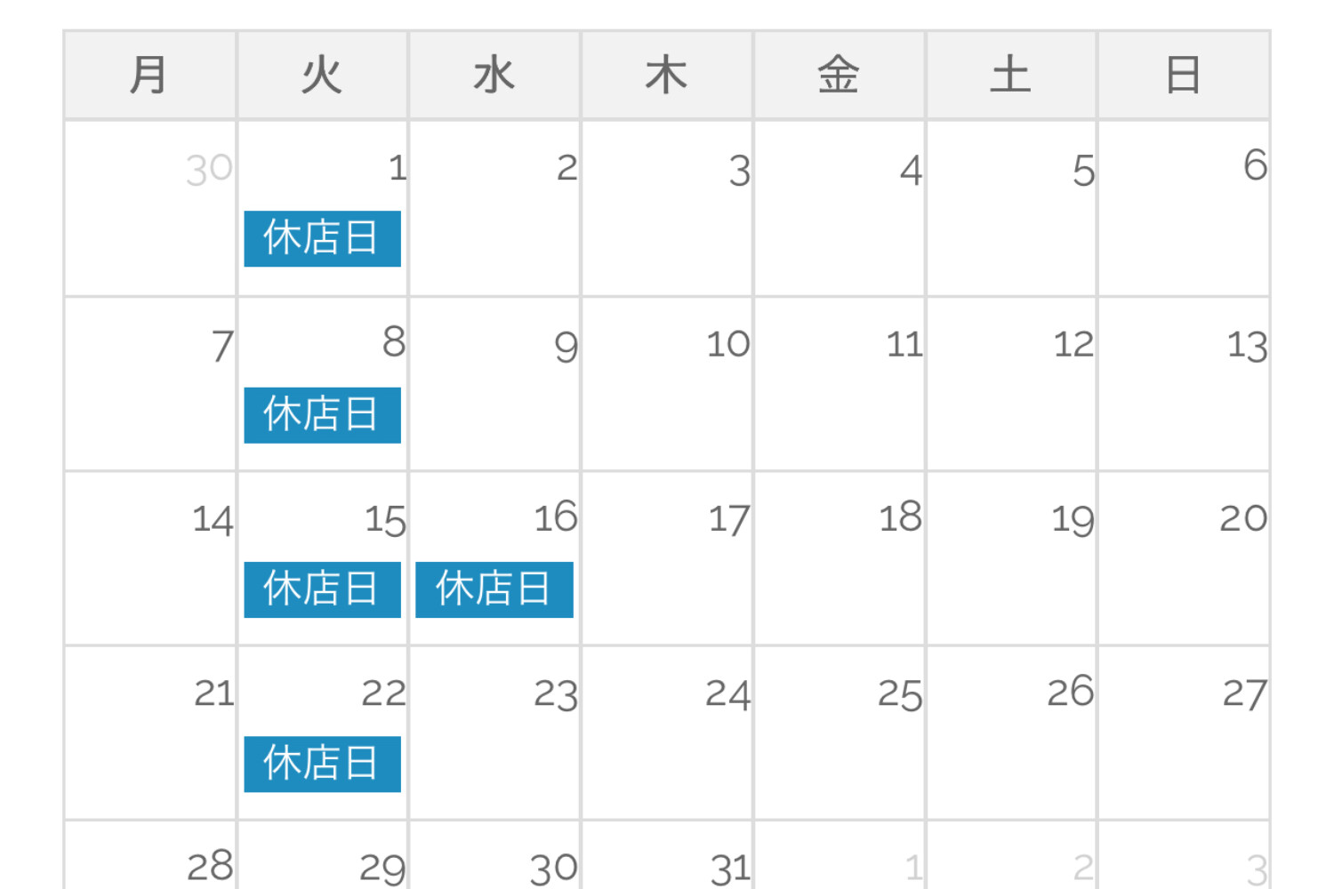 4/28(月) 休業